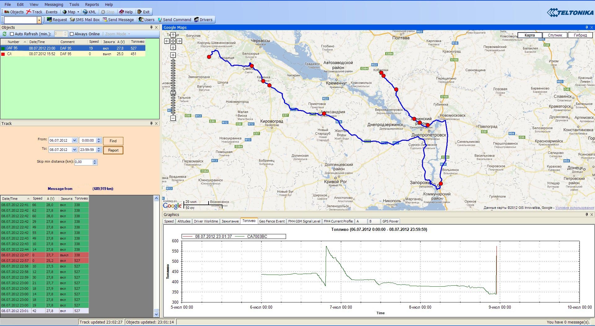 Данная информация хранится в памяти бортового модуля и автоматически или по запросу передается на сервер, к которому Вы имеете круглосуточный доступ с любого стационарного или мобильного компьютера, подключённого к Интернету.